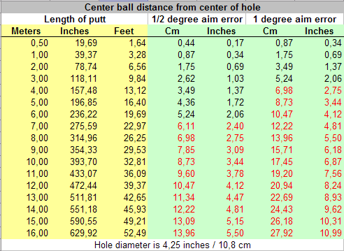 - Double that error and you'll (obviously!) miss the putts on half that distance..