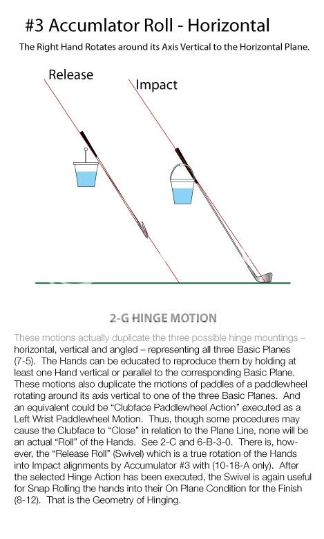 swinging requires sequenced release of accumulators #2 then #3 per tgm. that requires a 10-18-B wrist action. The left wrist is bent for a 10-18-B wrist action. 10-18-A, which maintains a flat left wrist, seems to require symultaneous release to stay on plane, other than with a Zero accumulator #3, how can #2 accumulator be released on plane with a flat left wrist?