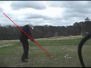 The red line represents the Turned Shoulder Plane, which was drawn through the Right Shoulder joint when Lynn was at the Top. The tiny blue dot represents his Right Shoulder, which is clearly above Plane.