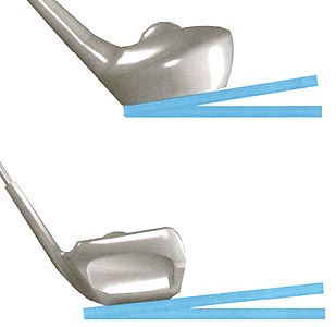 Note that the toe of the club is off the ground for both woods and irons.